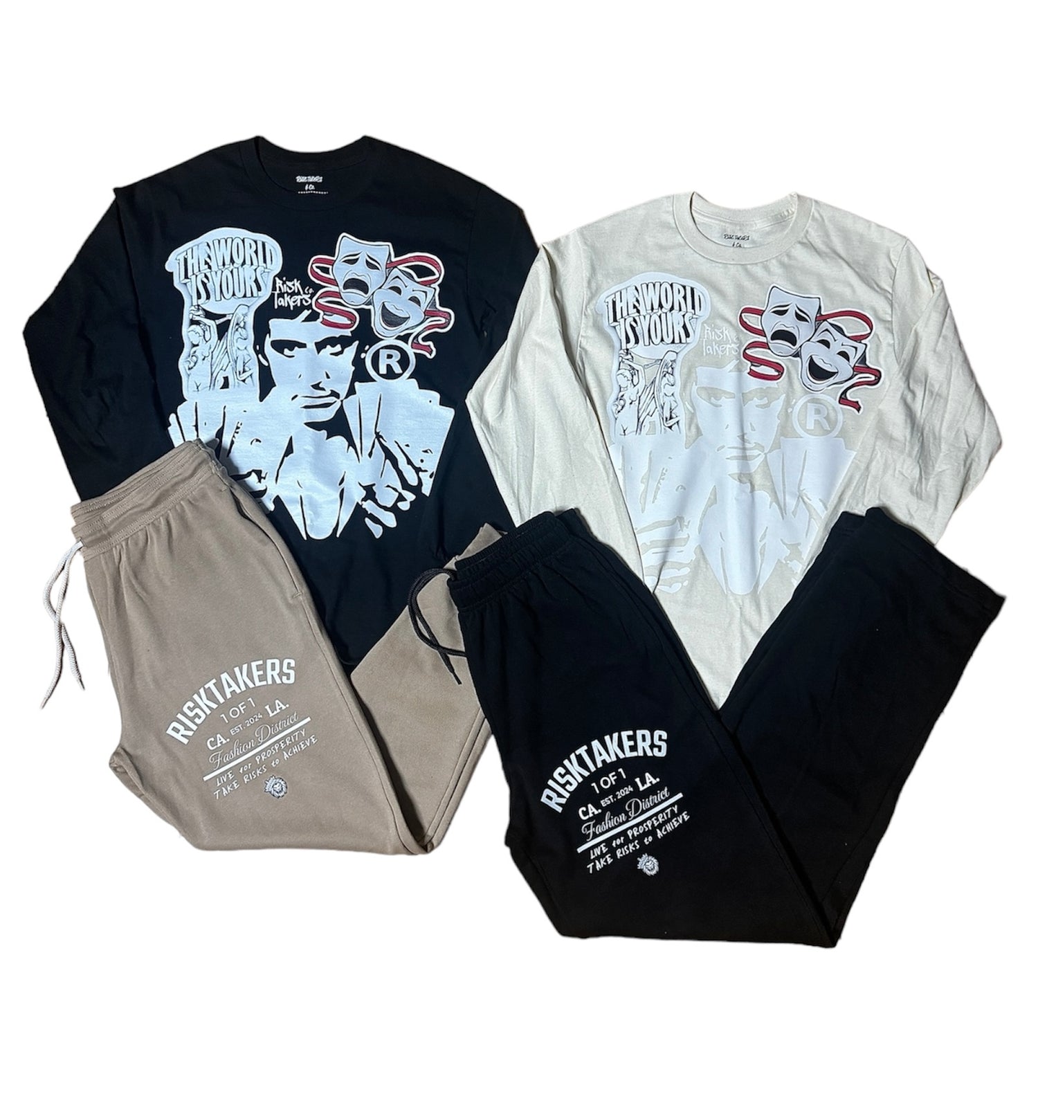 Our NEW Trim Fitted LongSleeves & SweatPants made for both Ladies and Gentlemen, A closet staple, RiskTaker Fleeces is made for an everyday look